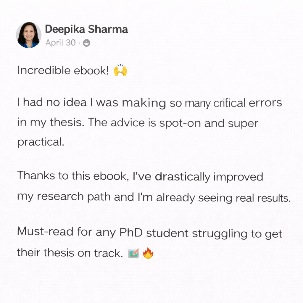Hi — I help PhD students finish their research papers without confusion. I’ll show you the exact step-by-step method I use to turn raw research into a clear, well-structured paper that reviewers accept. You’ll learn in simple language, with real examples and ready-to-use templates, so you never get stuck or waste time again. I’ve already helped thousands of students write faster, choose the right journals, fix reviewer comments, and finally get their papers published — and now you can follow the same proven system.
